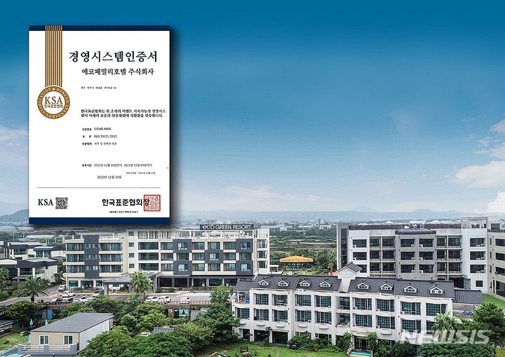 [제주=뉴시스] 우장호 기자 = ㈜에코패밀리호텔(에코그린리조트)는 최근 제주지역 숙박업체 최초로 이벤트 지속가능성 국제표준(ISO20121) 인증을 취득했다고 21일 밝혔다.