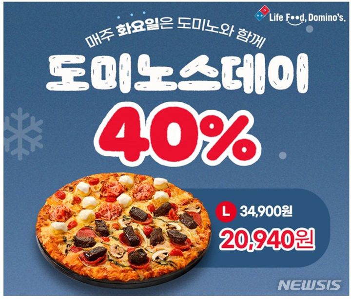 [서울=뉴시스] 김동현 기자 = 도미노피자가 오는 31일까지 매주 화요일마다 온라인 포장 주문 시 할인 혜택을 제공하는 '도미노스데이'를 진행한다고 3일 밝혔다.