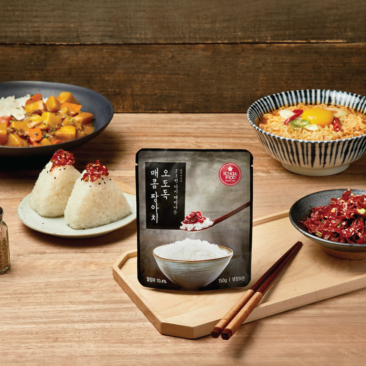 다양한 메뉴로 만들어 먹기 좋은 만능 반찬도 있다. 스쿨푸드 ‘오도독 매콤 짱아치’는 흰쌀밥에 그냥 먹어도 맛있지만, 김밥에 단무지 대신 사용할 수도 있다. 비빔밥에 고추장 대신 오도독 매콤 짱아치를 넣으면 간단하면서 별미인 비빔밥을 즐길 수 있다.