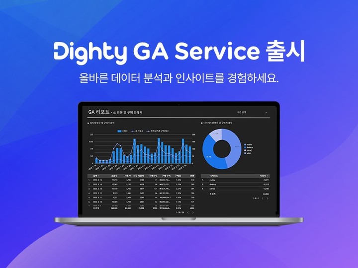 구글애널리틱스의 기존 버전인 유니버셜 애널리틱스(UA)가 올해 7월 종료됨에 따라 GA4로의 전환은 이제 선택이 아닌 필수 과제다. 이에 NHN데이터는 CDP(고객 데이터 플랫폼) 시장에서 축적한 데이터 기술력과 노하우를 결집해 '다이티 GA 서비스' 를 출시했다고 설명했다.