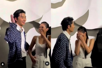 사진에는 명품 브랜드 컬렉션에 초청된 박서준과 제니의 모습이 담겼다. 특히 박서준은 팔을 휘저으며 제니에게 장난을 쳤고, 이에 제니는 웃음을 터트리기도 했다.