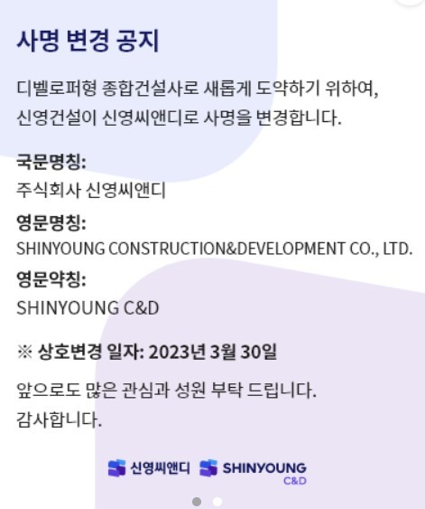 또 신영그룹은 건설 계열사 신영건설이 '신영씨앤디'로 사명을 변경했다.