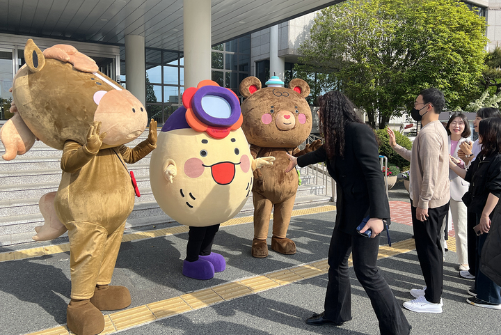 캐릭터 인형들은 이날 아침 일찍 동구청사 정문 앞에 나와 첫선을 보였고, 직원들과 방문 민원인을 손인사로 맞이하며 활기찬 하루를 응원했다.
