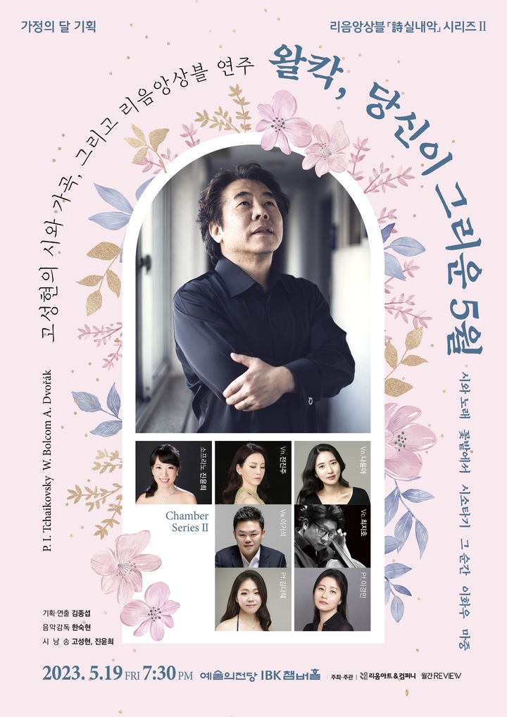 소프라노 진윤희가 최문자의 시 '그때부터'를 낭송, 공연의 포문을 연다. 이어 권길상의 '꽃밭에서를 부른다. 리음앙상블은 차이콥스키의 현악4중주 No.1, Op. 11 안단테 칸타빌레를 연주한다.