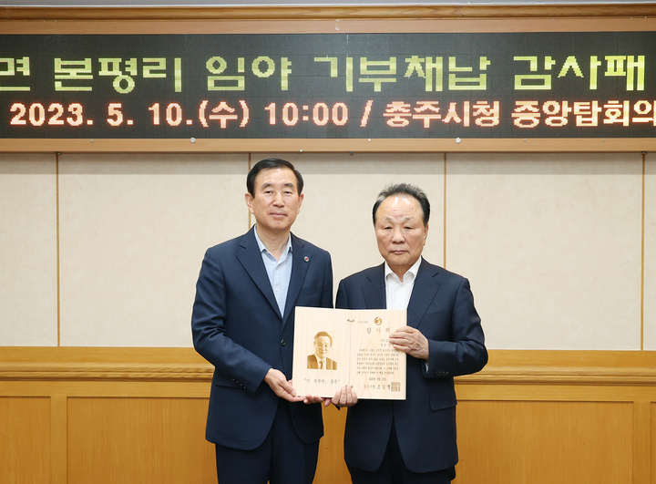 엄석오 일레븐건설 회장은 이날 충주시청을 찾아 "지속가능한 산림경영에 보탬이 되길 바란다"며 앙성면 본평리 산46-64번지 일원을 조건없이 충주시에 기부채납했다.