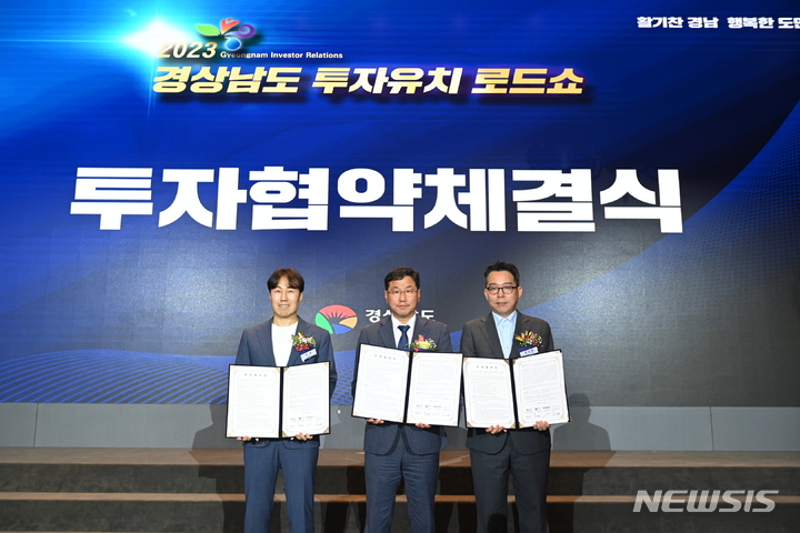 [남해=뉴시스] 차용현 기자 = 경남 남해군은 30일 부산에서 열린 ‘경상남도 투자유치 로드쇼’에서 호텔신라㈜·㈜해훈과 ‘남해 창선 관광숙박시설 개발사업’ 추진을 위한 투자협약(MOU)을 체결했다고 밝혔다.