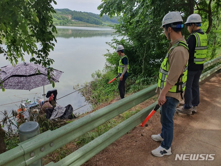 [사천=뉴시스] 차용현 기자 = 한국농어촌공사 경남지역본부 사천지사(이하 사천지사)가 관내 저수지에서 벌어지는 불법 낚시 행위 등에 대해 계도·단속에 나섰다.