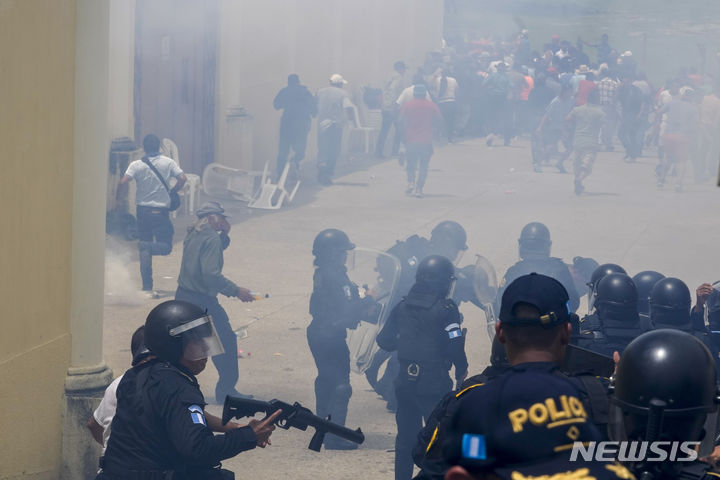 ![[과테말라시티= AP/뉴시스] 과테말라 대선이 치러진 25일 수도권의 산호세 엘골포 투표소에서 개소가 지연되는 데 항의하는 유권자들을 진압 경찰이 막고 있다.](https://img1.newsis.com/2023/06/26/NISI20230626_0000301149_web.jpg?rnd=20230626033510)