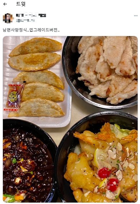 1일 SNS에 따르면 남편사망정식이란 지니TV 드라마 '마당이 있는 집'에 등장한 음식 조합을 말한다. 지난달 20일 방영분에서 등장인물 추상은(배우 임지연)은 가정폭력을 일삼는 남편 김윤범(배우 최재림)이 죽은 후 경찰 조사를 받게 된다. 이후 그는 중국집에서 짜장면, 군만두, 탕수육, 콜라 등을 만족스럽게 먹으며 해방감을 만끽한다.