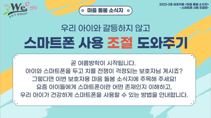 소식지는 학교의 여름방학 시작 시기에 맞춰 보호자가 자녀의 스마트폰 사용을 지도하는데 도움을 주기 위해 마련됐다.
