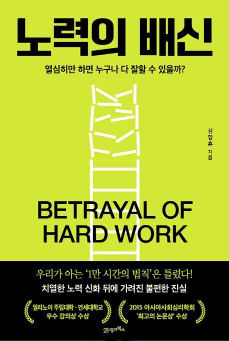 '노력의 배신'을 쓴 김영훈 연세대 심리학과 교수는 노력을 많이 한다고 성공하는 것도 아니고, 노력을 적게 한다고 실패하는 것도 아니라고 말한다. 노력은 수많은 조건 중 하나일 뿐이라는 것. 하지만 이렇게 이야기하면 많은 사람이 반문한다. 그래도 가장 중요한 조건 중 하나가 노력 아니냐고 말이다. 이 책에서는 그 질문에 대한 답을 밝히는 과정을 소개한다.