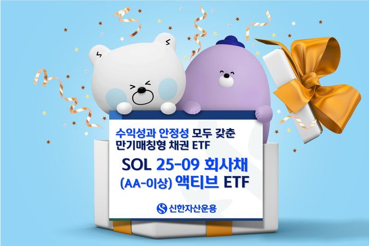 [서울=뉴시스] 강수윤 기자 = 신한자산운용이 'SOL 25-09 회사채(AA-이상) 액티브 ETF(상장지수펀드)'를 신규 상장한다고 8일 밝혔다.