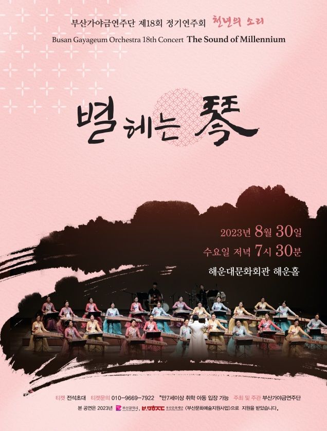 [부산=뉴시스]김민지 기자 = 부산가야금연주단이 30일 오후 7시30분 해운대문화회관 해운홀에서 제18회 정기연주회 '별 헤는 琴(금)'을 개최한다.