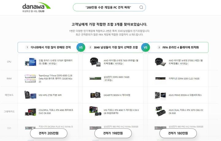[서울=뉴시스] 오동현 기자 = #. 경기도에 사는 직장인 A씨는 5년 전 구매한 데스크톱 PC를 바꾸기 위해 조립PC로 유명한 다나와 사이트를 방문했다. A씨는 과거 가성비 좋은 부품을 하나씩 검색해 주문했지만 이번에는 검색창에 "100만원 수준의 사무용PC 견적"이라는 입력 하나로 ▲가장 많이 팔린 구성 ▲특정 세대가 선택한 조합 ▲최저가 기준 등 다양한 견적을 받아 손쉽게 구매할 수 있었다.
