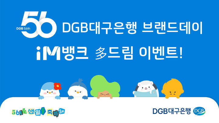 6일 DGB대구은행에 따르면 이번 행사는 창립기념일을 맞아 고객에게 감사를 전하는 한편 iM뱅크와 DGB대구은행 공식 SNS를 통한 고객의 다양한 참여와 소통을 위해 마련됐다.