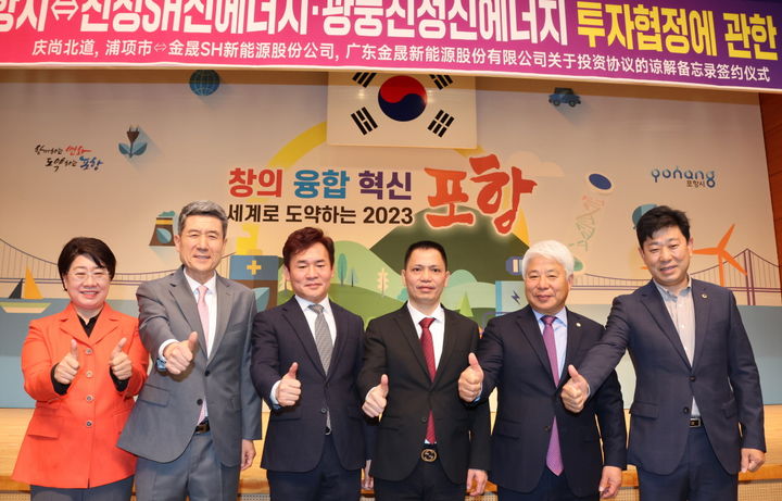 이날 협약식에는 이강덕 시장과 백인규 포항시의회 의장, 이달희 경북도 경제부지사, 박용선 도의회 부의장, 김욱한 진성SH신에너지 대표, 리야오 중국 광둥진성신에너지 총경리 등이 참석했다.
