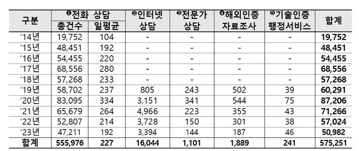 [세종=뉴시스]이승주 기자 = 기업의 인증·표준 관련 전문 상담창구 '1381인증표준정보센터'에 약 9년 간 57만 건의 상담이 처리된 것으로 나타났다. 연간 기준 약 6만 건에 달한다.