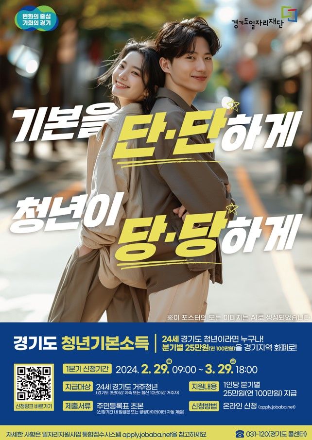 [수원=뉴시스] 박상욱 기자 = 경기도가 24세 청년에게 분기별로 25만 원(연 100만 원)을 지급하는 '청년기본소득' 2024년 1분기 신청접수를 29일 오전 9시부터 3월 29일 오후 6시까지 진행한다.