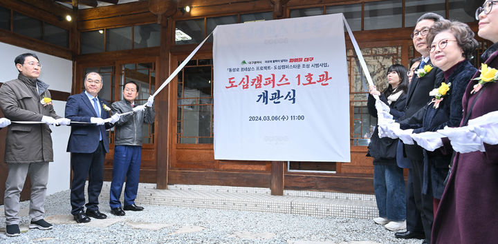 [대구=뉴시스] 정창오 기자 = 대구시는 도심 캠퍼스타운의 첫 번째 사업지로 시에서 자체 매입한 중구의 옛 판게스트하우스를 도심캠퍼스 1호로 지정하고 6일 개관식을 개최했다.