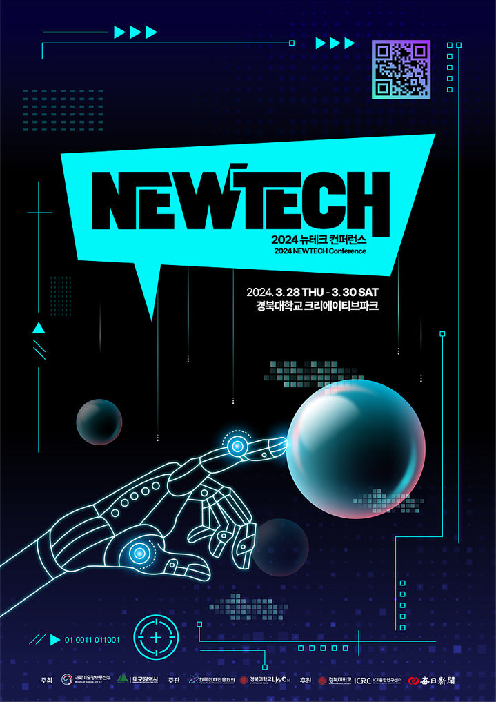 [대구=뉴시스] 정창오 기자 = 인공지능, 메타버스 등 뉴테크 기술 동향 및 지역산업 육성정책에 대해 논의하고 사업화 전략을 공유하는 ‘2024 뉴테크 컨퍼런스’가 28일부터 30일까지 경북대 크리에이티브 파크에서 개최된다.