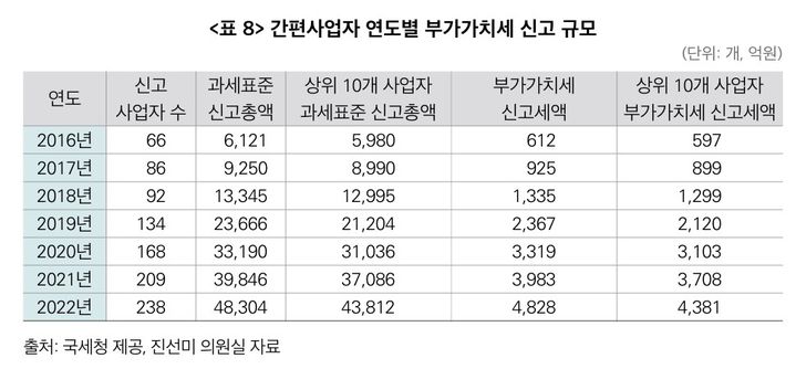 조세연이 오픈마켓 3사의 매출액에 따른 부가세를 단순 계산한 결과 지난 2020년 세수는 1조600억원에 달하지만, 실제 납부한 세금은 3100억원에 그친다고 주장했다. 이는 추정된 부가세 대비 29.3%에 그치는 수준이다.