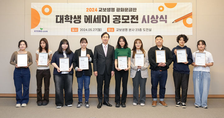 [서울=뉴시스] 신항섭 기자 = 교보생명은 청춘들의 이야기에 귀 기울이며 소통하기 위해 '2024 광화문글판 대학생 에세이 공모전 시상식'을 개최했다고 28일 밝혔다.