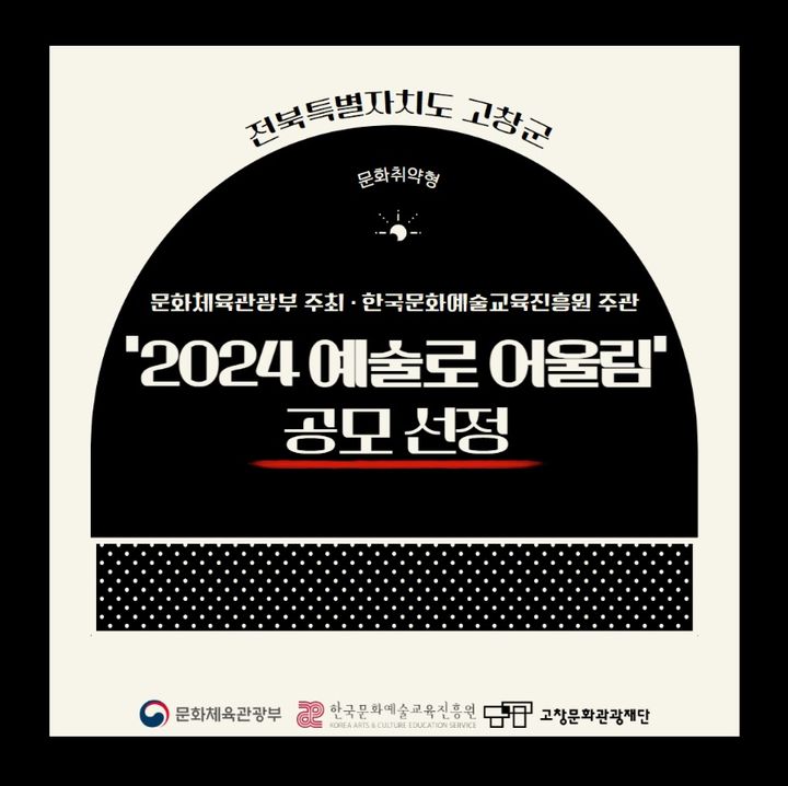 [고창=뉴시스] 김종효 기자 = 전북 고창문화관광재단이 인구소멸지역 문화예술교육지원사업인 '2024 예술로 어울림' 공모에 선정돼 관련 사업비로 국비 1억원을 확보했다고 21일 밝혔다.
