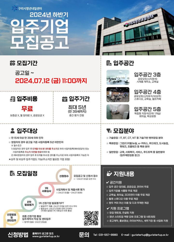 [구리=뉴시스]이호진 기자 = 경기 구리시는 구리시 청년내일센터 2024년 하반기 입주기업을 12일까지 모집한다고 9일 밝혔다.
