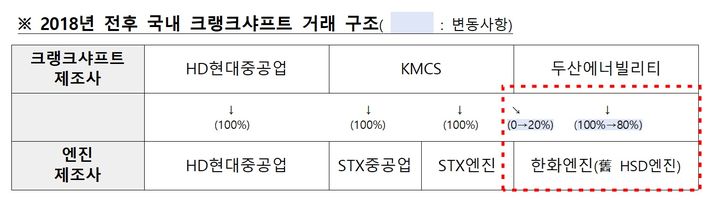 앞서 국내 엔진 제조사는 CS를 직접 생산할 수 있도록 수직계열화를 이루거나, 특정 업체와 전속 거래관계를 맺어왔다. 하지만 2018년 한화엔진(옛 HSD엔진)과 두산에너빌리티의 계열관계가 종료되면서 수직계열화된 구조에 변화가 생겼다. 한화엔진이 두산에너빌리티에서 CS를 100% 안정적으로 공급받던 구조가 20%는 KMCS에서 공급받는 구조로 변하면서 부터다.