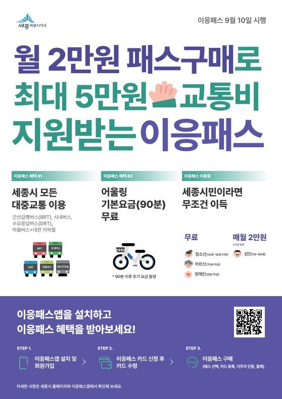 세종시에 거주하는 시민이면 누구나 구입·이용할 수 있다. 청소년과 70세 이상 어르신, 장애인 등은 무료다.