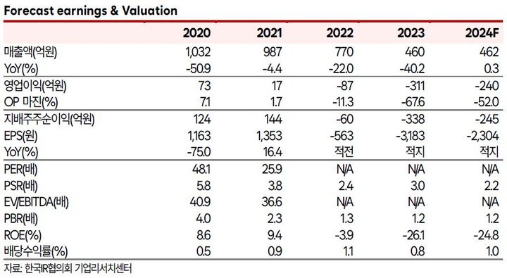 올해 오이솔루션의 예상 매출액은 전년 대비 0.3% 증가한 462억원, 영업손실은 적자를 지속한 240억원으로 추정했다. 올해에도 보수적인 글로벌 통신 인프라 투자가 이어지면서 와이어리스 매출액은 반등을 기대하기 어렵다는 판단이다.