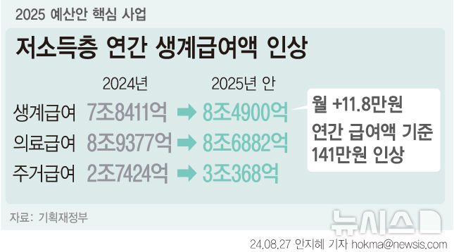 중위소득생계급여 월 11.8만원…연간 141만원 인상