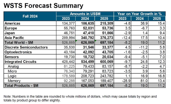 WSTS는 "글로벌 반도체 시장은 올해와 내년에 강력한 성장세를 보일 것"이라며 "내년에는 업계 전반적으로 꾸준한 성장세를 보이는 가운데, 모든 지역에서 지속적인 확장이 이뤄질 것"이라고 밝혔다.