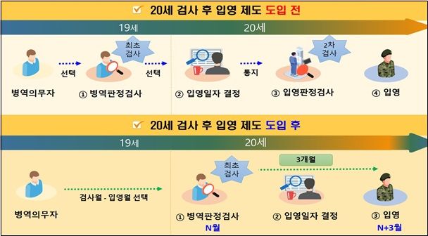 그동안 병역의무자는 19세에 병역판정검사를 받고 별도로 현역병 입영신청 후 입영판정검사를 다시 받아야 했다.