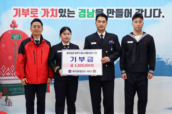 경남사회복지공동모금회는 지난 13일 사무실에서 해군 비로봉함 장병들의 제주항공 여객기 사고 피해지원 성금 102만원을 기탁했다고 14일 전했다.