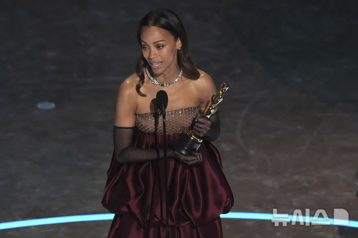 [서울=뉴시스] 손정빈 기자 = 배우 조이 살다냐(Zoe Saldaña·47)가 오스카를 품에 안았다. 살다냐는 한 작품으로 칸국제영화제와 미국 아카데미에서 모두 연기상을 받은 첫 번째 배우가 됐다.