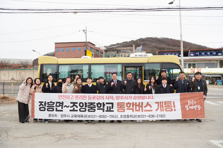 [양주=뉴시스] 배성윤 기자 = 경기 양주시가 4일 오전 관내 장흥면에서 조양중학교를 연결하는 통학버스를 개통했다.