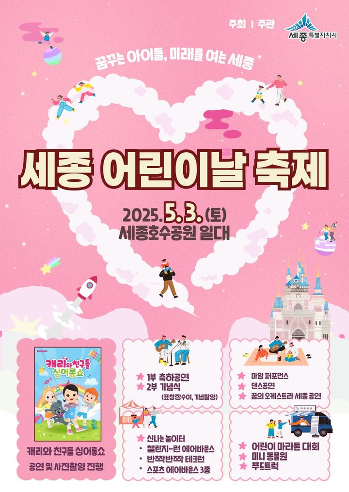 [세종=뉴시스]송승화 기자 = 세종시가 내달 3일 세종호수공원 일원에서 '제103회 세종 어린이날 축제'를 개최한다.