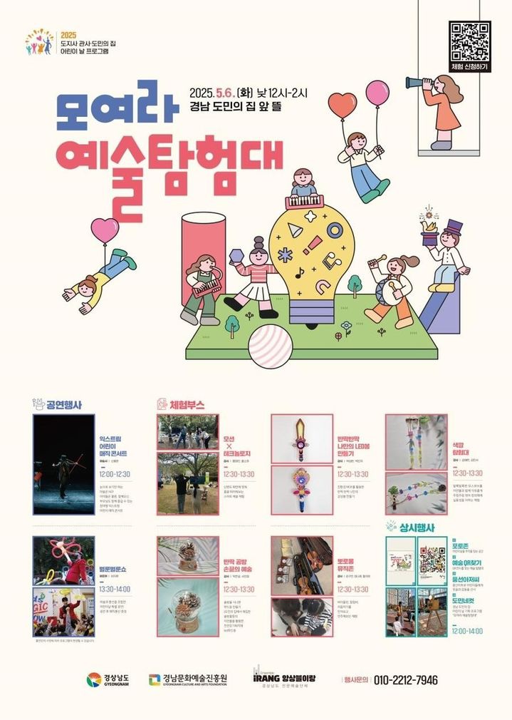 [창원=뉴시스]홍정명 기자 = 경남도는 6일 창원시 성산구 용호동 경남도민의 집에서 '모여라 예술탐험대'를 주제로 어린이날 행사를 개최한다고 1일 밝혔다.