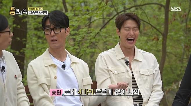차승원과 공명은 6일 방송된 SBS TV 예능프로그램 '틈만나면'에 나와 유재석·유연석과 대화를 나눴다.