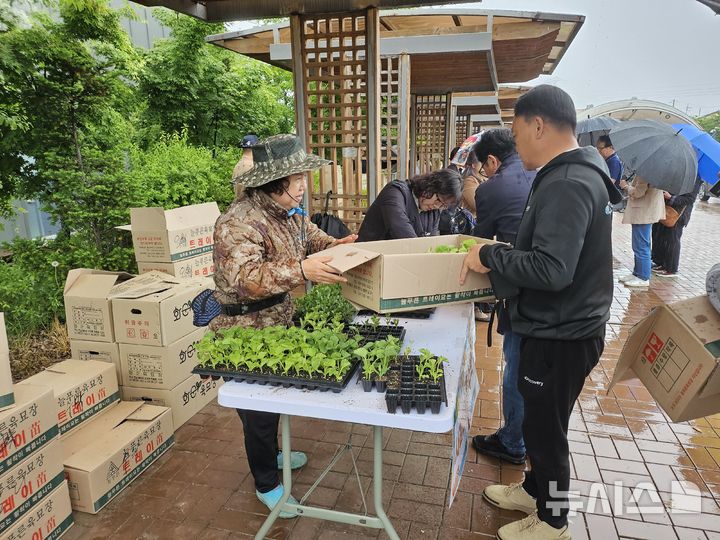 이날 행사에서는 오이, 땅콩, 참외, 호박, 흑수박 등 11종의 모종 약 8500모가 무료로 배부됐다.