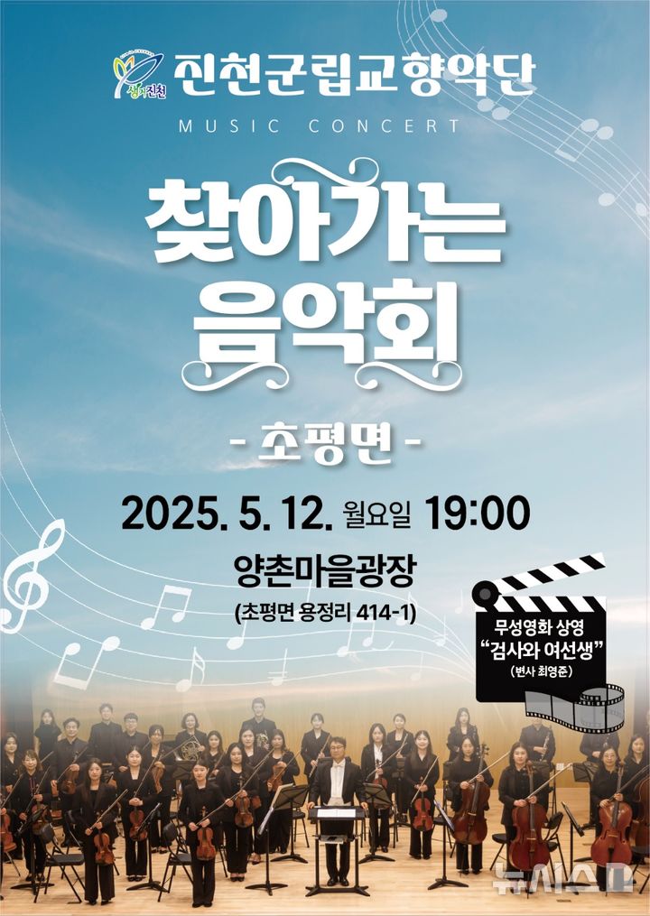 생거진천 군립교향악단이 오는 12일 오후 7시 초평면 양촌마을 광장에서 '찾아가는 음악회'를 개최한다.