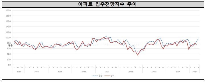 13일 주택산업연구원이 주택사업자를 대상으로 설문 조사한 결과, 5월 전국 아파트 입주전망지수는 전월 대비 7.6포인트(p) 상승한 95.1로 나타났다.