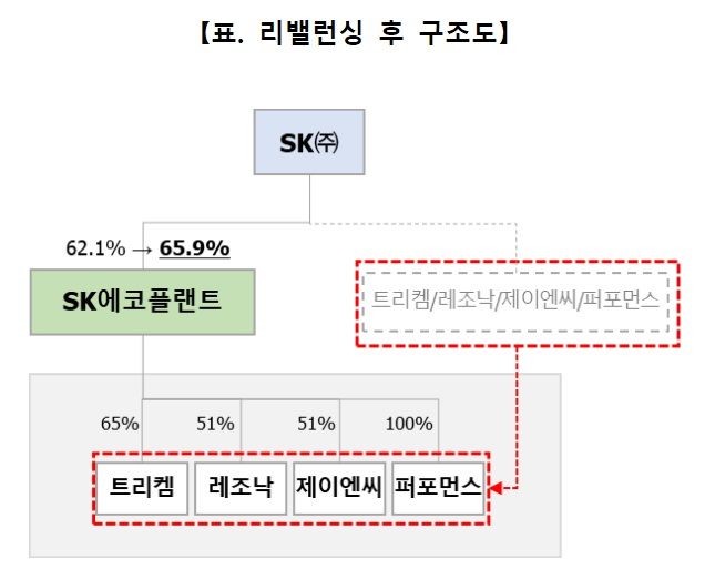 이사회 의결에 따라 SK㈜는 SK머티리얼즈 CIC 산하 자회사 SK트리켐(65%), SK레조낙(51%), SK머티리얼즈제이엔씨(51%)의 보유 지분을 SK에코플랜트에 현물출자한다.