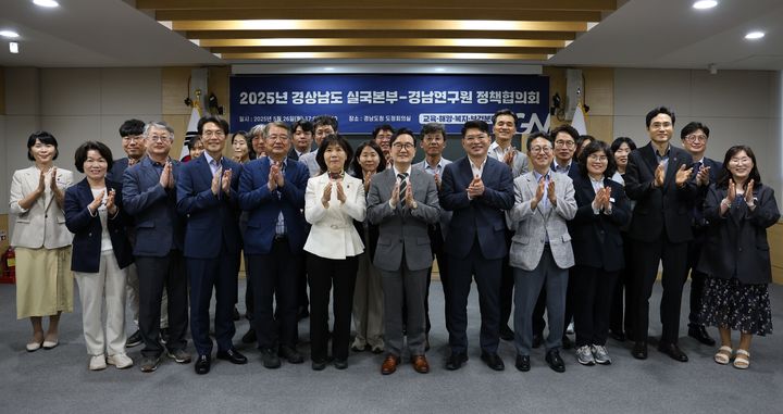 [창원=뉴시스]홍정명 기자 = 경남연구원은 26일 도청에서 제4차 경상남도 실국본부-경남연구원 정책협의회를 열고, 교육·해양·복지·보건분야 중심으로 실효성 있는 정책연구 추진과 정책지원 강화 방안을 논의했다.