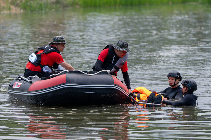 [증평=뉴시스] 서주영 기자 = 충북 증평군은 28일 증평읍 보강천 일대에서 '2025 재난대응 안전한국훈련'을 실시했다.