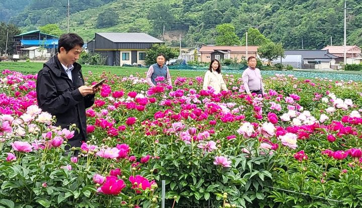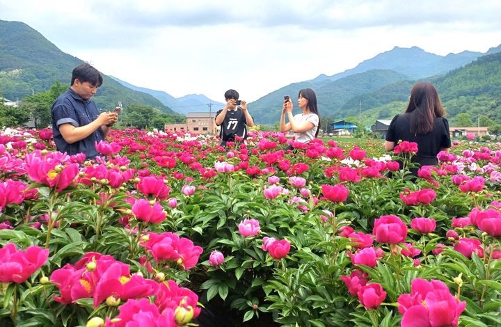 마을 주민이 힘을 모아 만든 작약꽃밭이 입소문을 타면서 계절 사진 '핫플'로 떠올랐다.