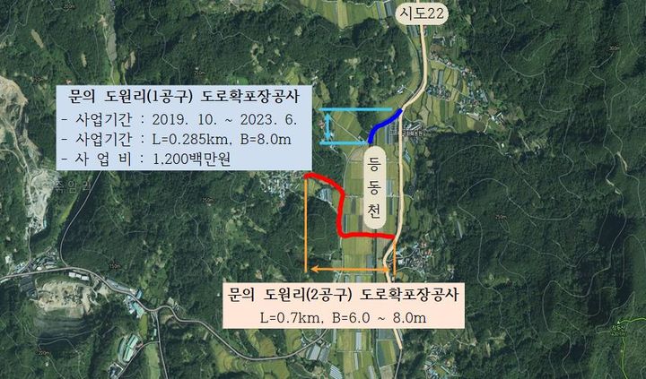 [청주=뉴시스] 임선우 기자 = 충북 청주시는 상당구 문의면 도원리 농어촌도로(2공구)를 확장한다고 30일 밝혔다.