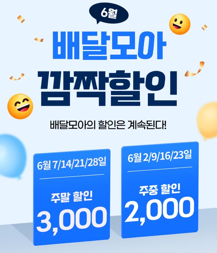 내달 2일부터 배달모아 이용자 주중 800명, 주말 200명에게 2000원 또는 3000원 할인 쿠폰을 선착순으로 지급한다.