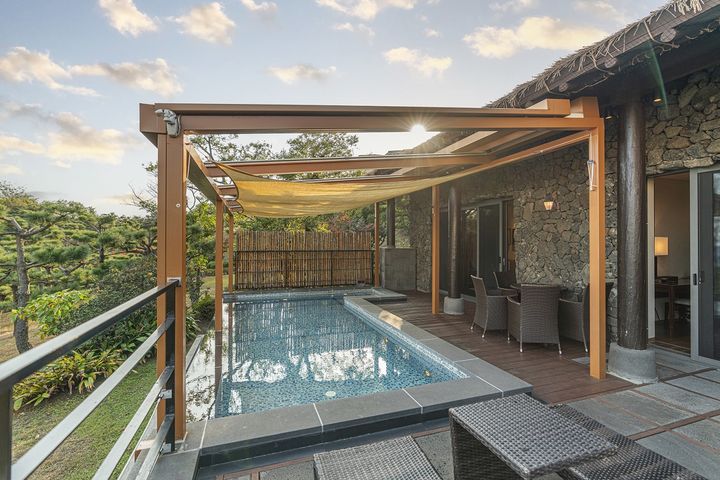 가든뷰 룸 이상 연박 시에는 1층에 위치한 야외 풀 카페 인기 메뉴인 떡볶이 또는 흑돼지 탕수육 중 1개와 소프트 드링크 2잔을 추가로 제공한다.